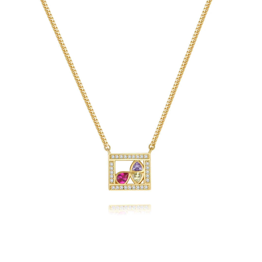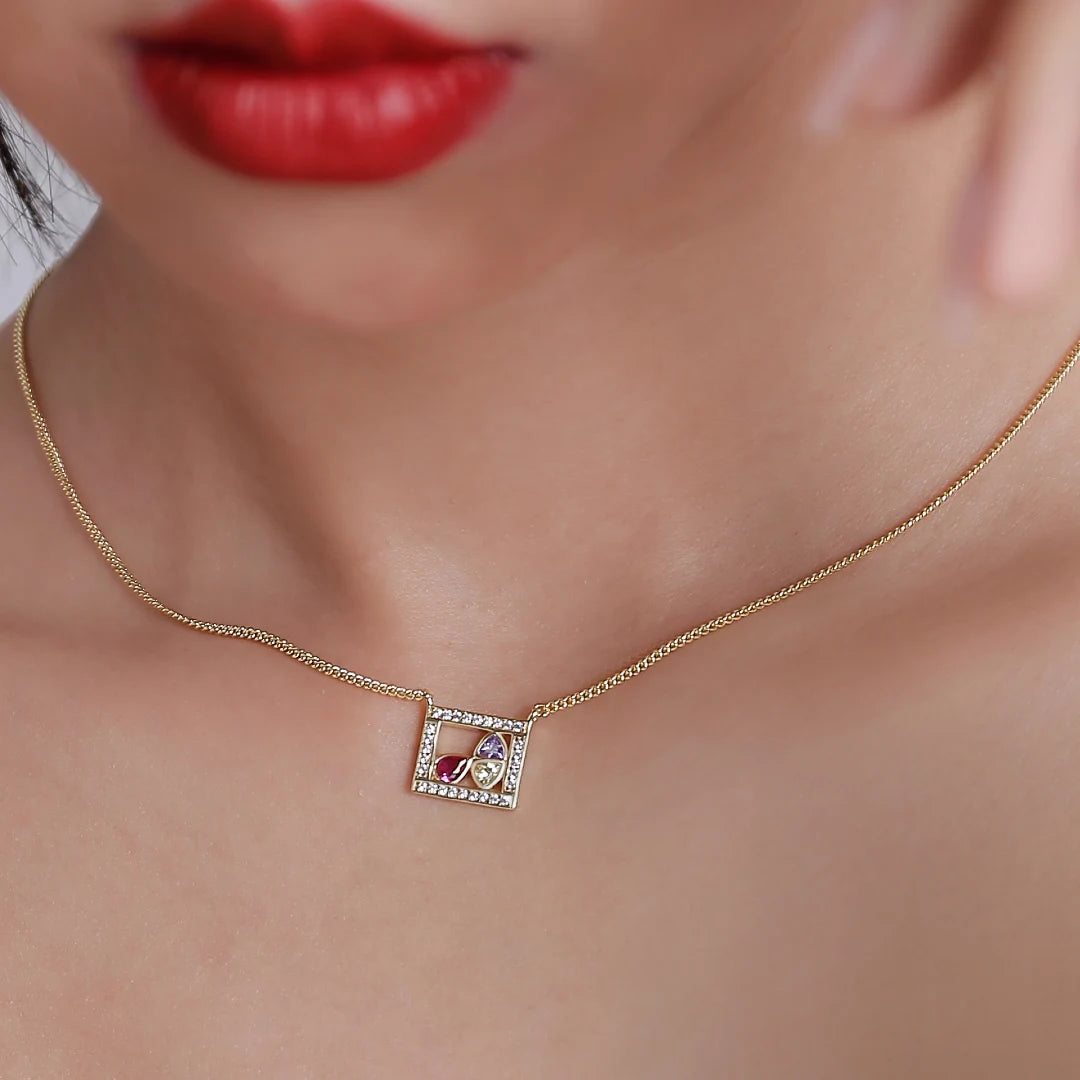 18K Gold Emerald Cut Small Smile Necklace