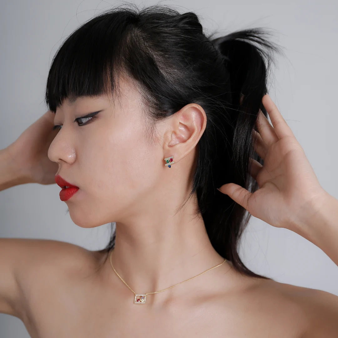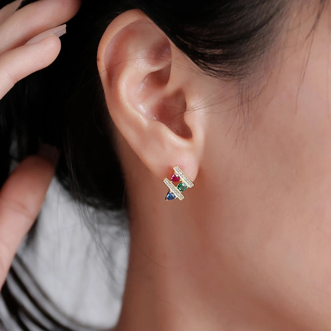 Trendolla Double Zircon Sleeper Earrings