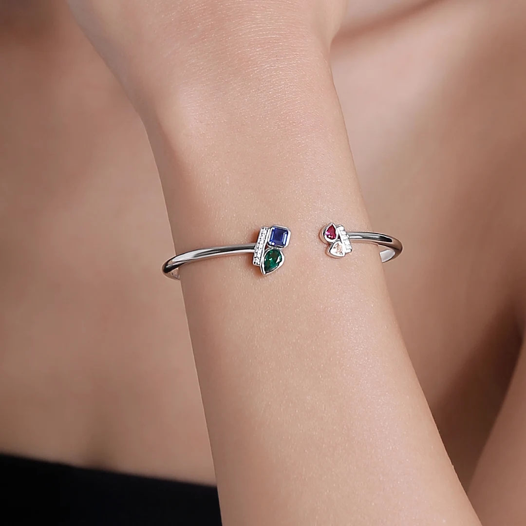 925 Sterling Silver Satellite with Diamonds Felicity Bracelet with Picture Inside