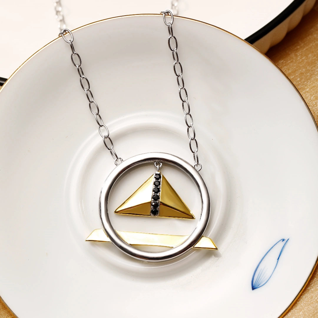 18k Gold Ferris Wheel Round Cut Necklace