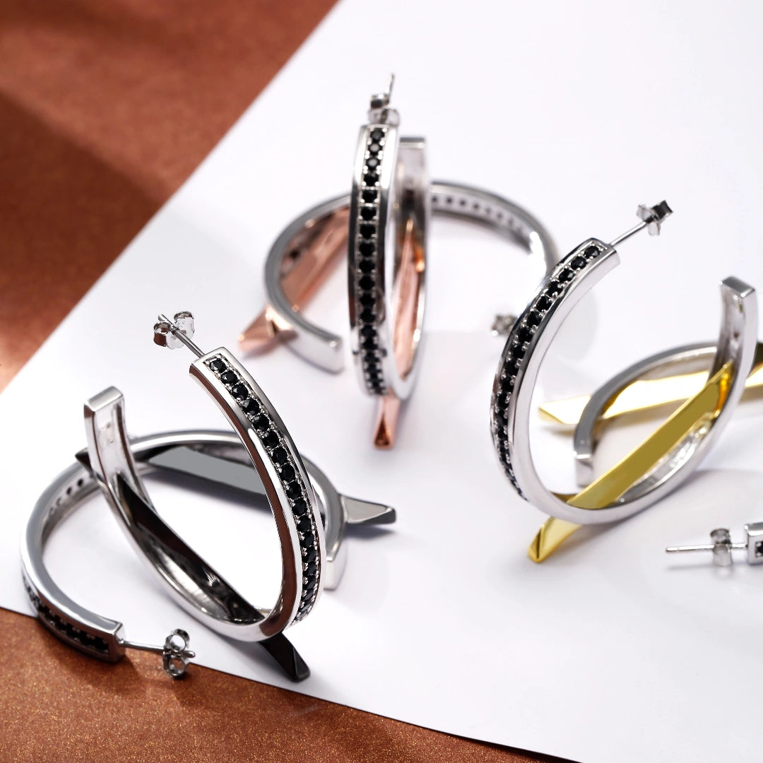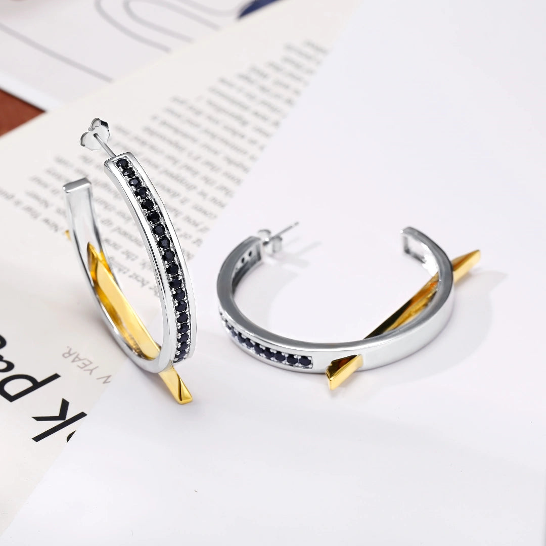 Gold Claw Set CZ Diamond Hoop&Huggie Earrings