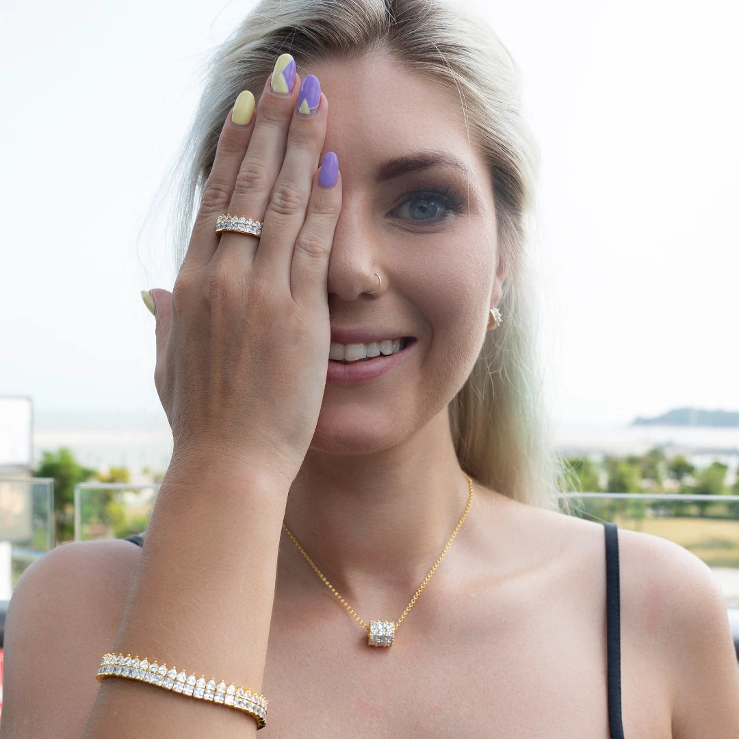 材料: Gold Vermeil - (底座 - 925 銀,盤子 - 18k 黃金),5A 立方氧化鋯鑽石