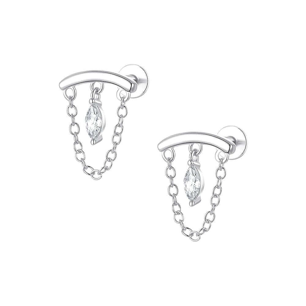 Prong Rhombus Diamond Drape Threaded Flat Back Earrings